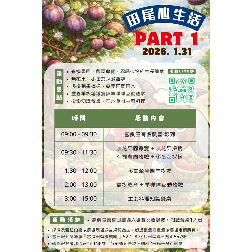 線上支付 |田尾心生活|產地餐桌 — 大人票 (1月31日)