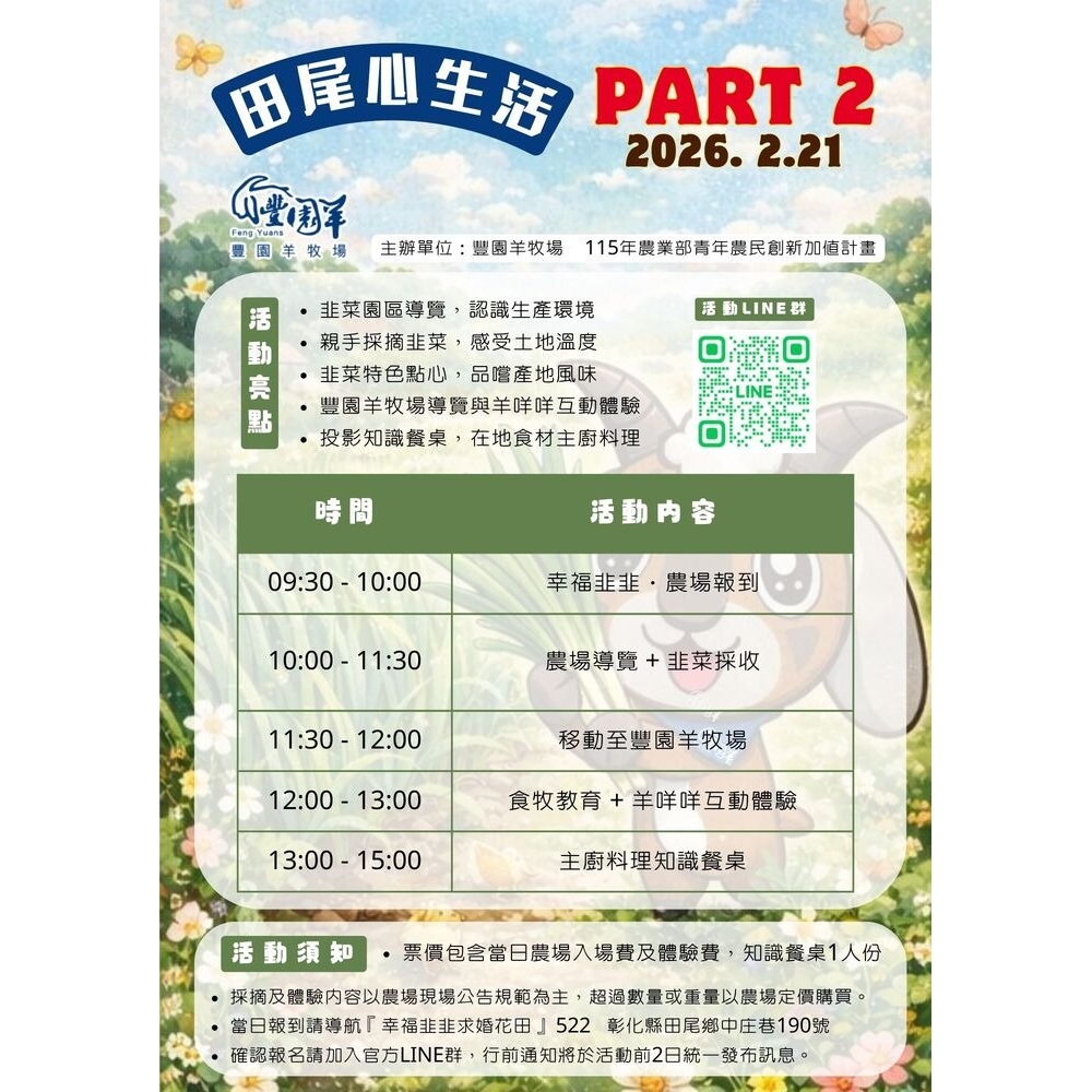 線上支付 |田尾心生活|產地餐桌 — 大人票 (2月21日)